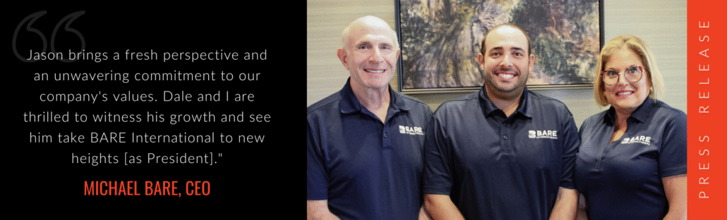 Michael Bare expressed his confidence in the new leadership and the company’s future. “Jason brings a fresh perspective and an unwavering commitment to our company’s values. Dale and I are thrilled to witness his growth and see him take BARE International to new heights.”