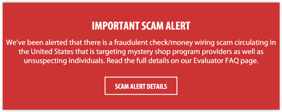 Fairfax, VA — We’ve been alerted that there is a fraudulent check/money wiring scam circulating in the United States that is targeting mystery shop program providers as well as unsuspecting individuals.